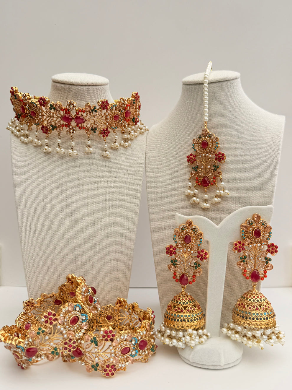 Nazo is a design steeped in detail and meaning, with ruby reds, emerald greens, and